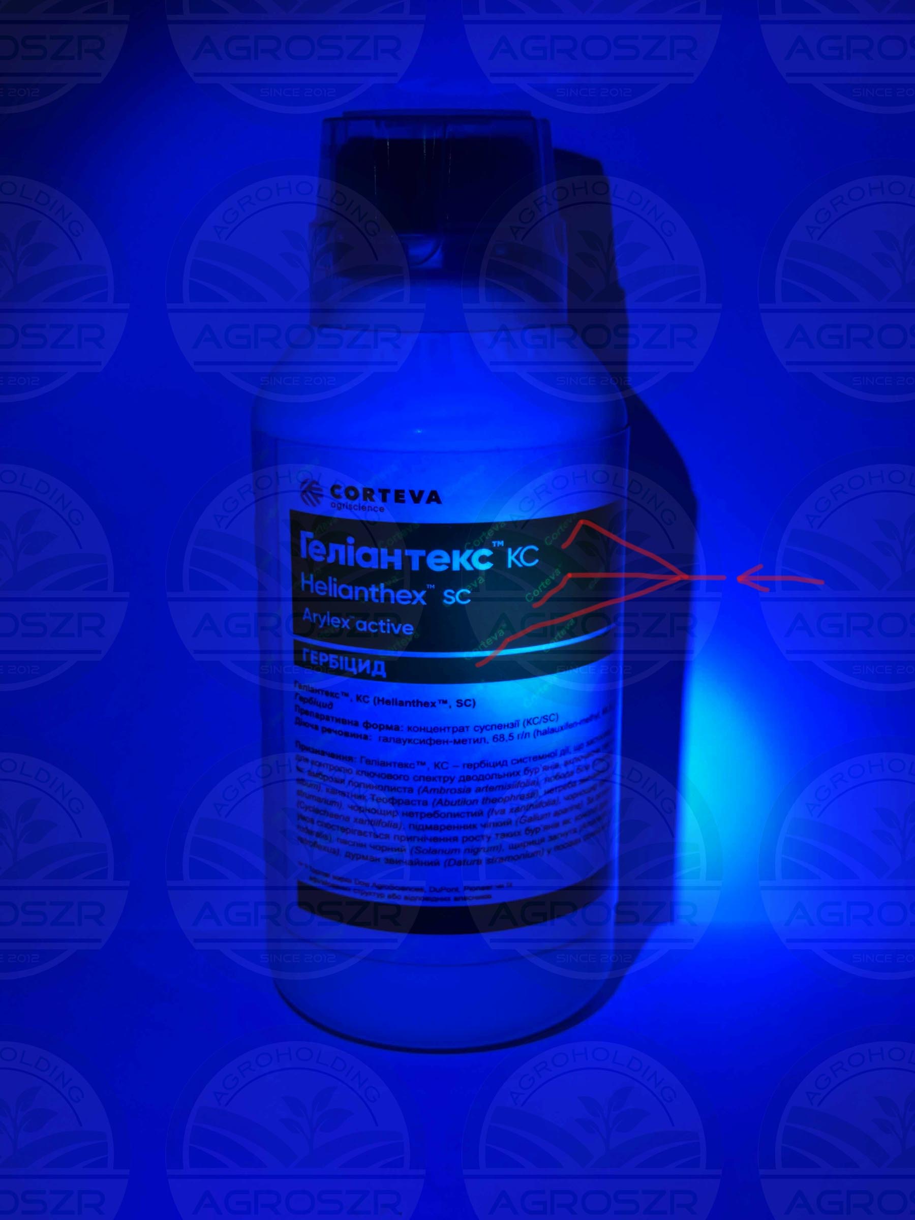 Под ультрафиолетом отображается надпись "CORTEVA"